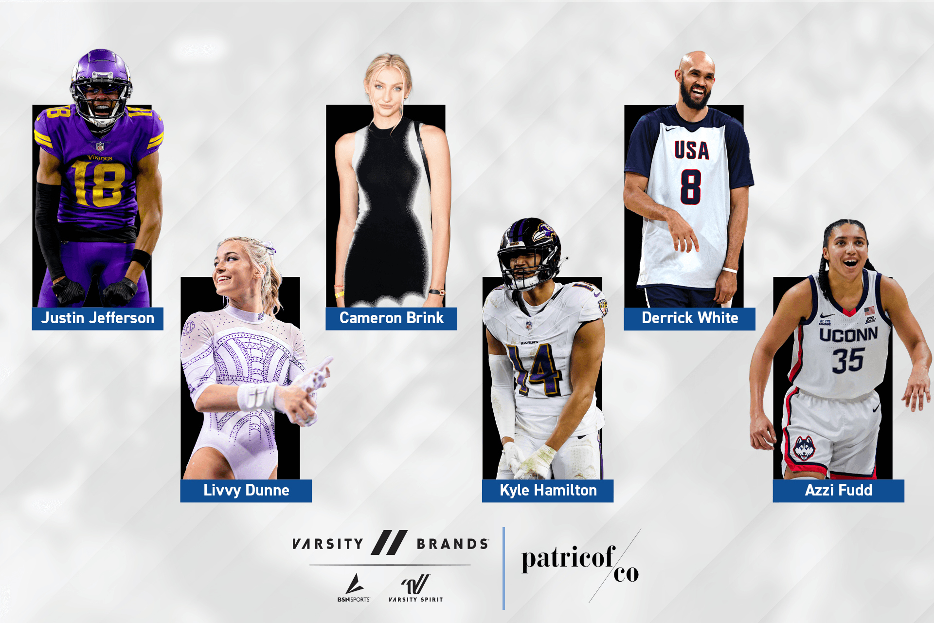 Over forty-five of P/Co’s world-renowned athlete clients, representing all major U.S. sports, have invested in Varsity Brands and are eager to support its continued success. Among these investors are celebrated professional athletes, including NCAA gymnast Livvy Dunne of Louisiana State University; WNBA star Cameron Brink of the Los Angeles Sparks; Olympic gold medalist and NBA champion Derrick White of the Boston Celtics; standout guard Azzi Fudd of the University of Connecticut women's basketball team; two-time Pro Bowl safety Kyle Hamilton of the Baltimore Ravens; and four-time Pro Bowl wide receiver Justin Jefferson of the Minnesota Vikings.